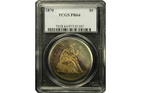 An 1870-P Seated Liberty Dollar in Proof-64 quality is shown below. In fact, Seated Liberty Proof coins that survived have become very valuable. Especially since this coin only had a mintage of only 1,000 coins. Austin Rare Coins is offering this lovely Proof Silver Dollar at an excellent value.