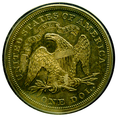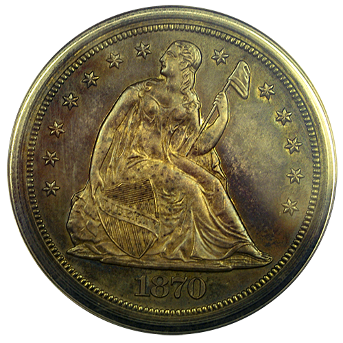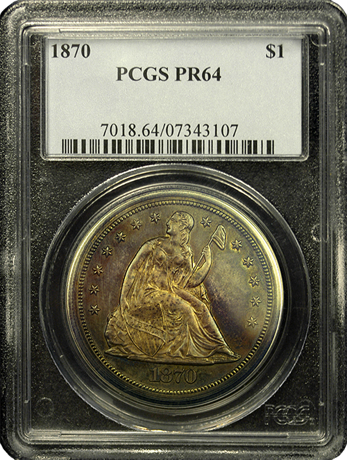 An 1870-P Seated Liberty Dollar in Proof-64 quality is shown below. In fact, Seated Liberty Proof coins that survived have become very valuable. Especially since this coin only had a mintage of only 1,000 coins. Austin Rare Coins is offering this lovely Proof Silver Dollar at an excellent value.